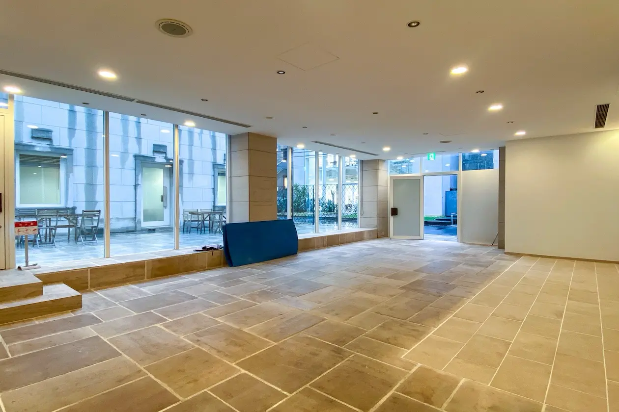 前面にはゆとりあるテラス空間が広がり、リフレッシュや打ち合わせにも使えそうな心地よい環境です。