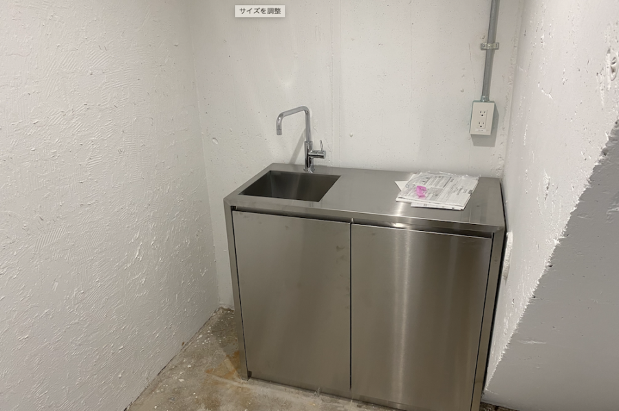壁は白塗装で仕上げ、照明はライティングレールまでは設置済みとなる。