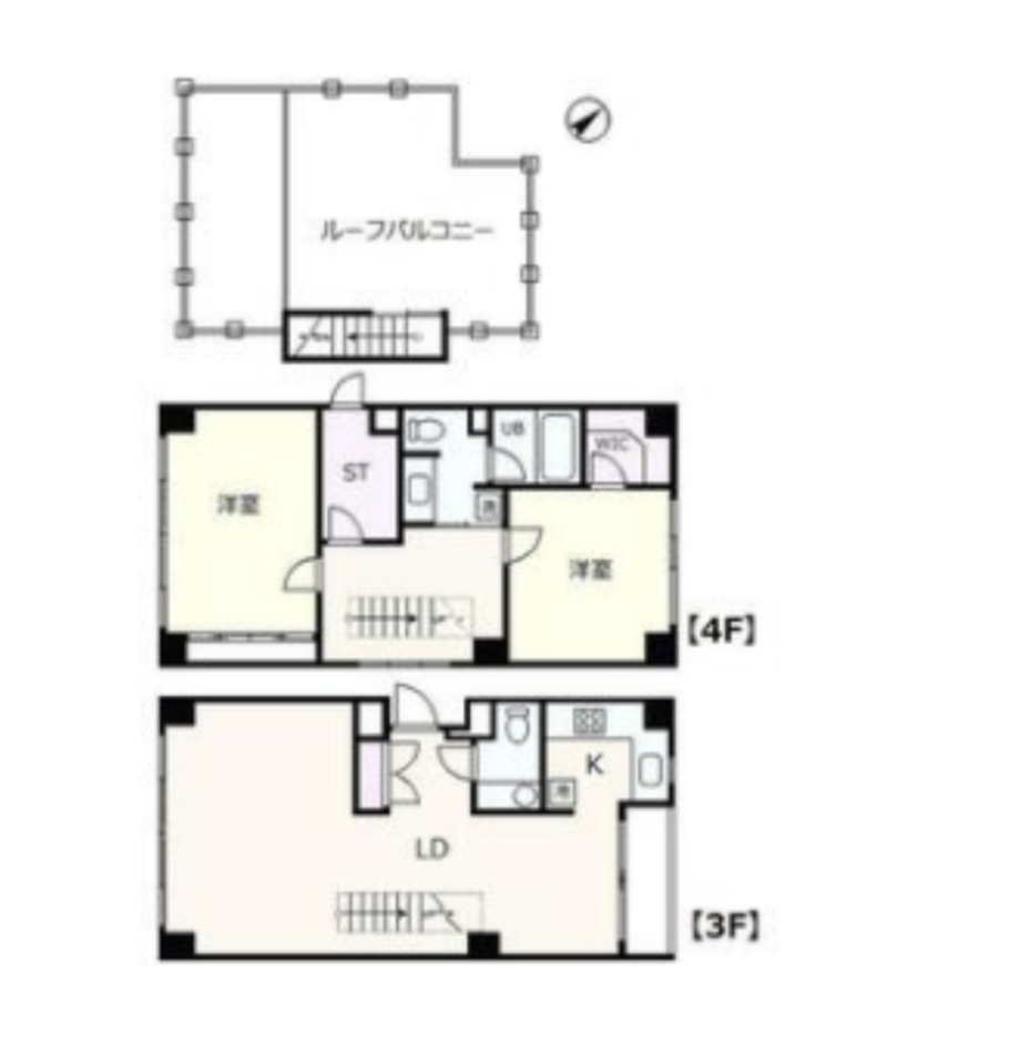 今回ご紹介するのは3,4Fのメゾネットタイプのお部屋。