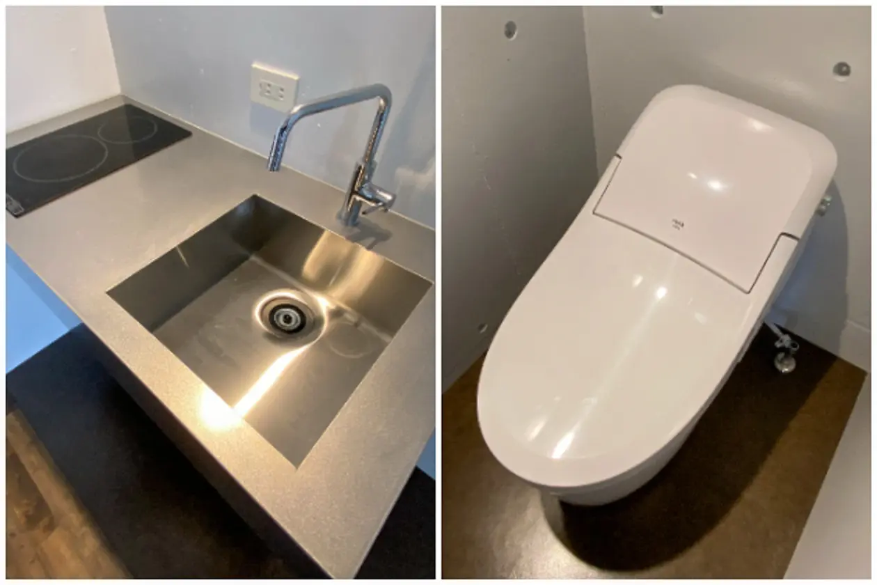 事務所利用に必要最低限の設備が備わっています。キッチンもコンパクトなつくりで使い勝手がよさそう。