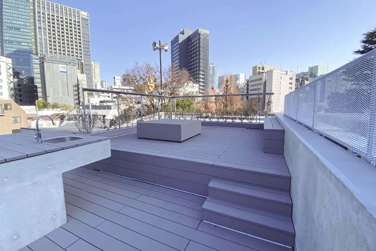 屋上には入居者専用で利用が可能なウッドテラスが。