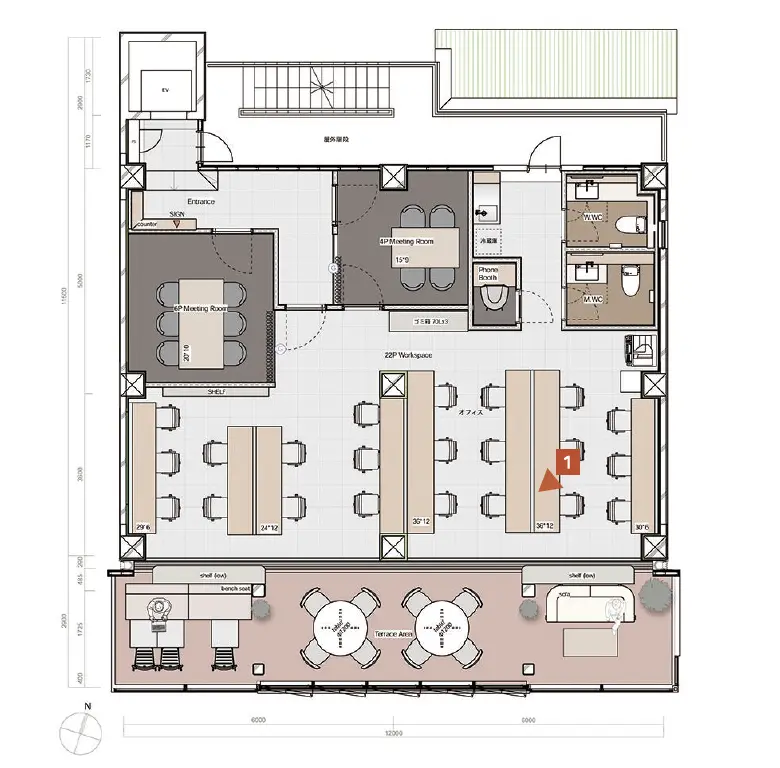 渋谷・表参道の中間地点の渋谷2丁目アドレス、インナーテラスが表情豊かな家具付きセットアップオフィス。