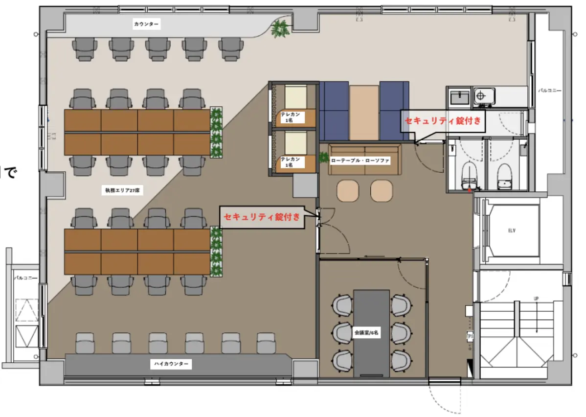 より落ち着いたトーンと余白を感じさせるセットアップフロア。