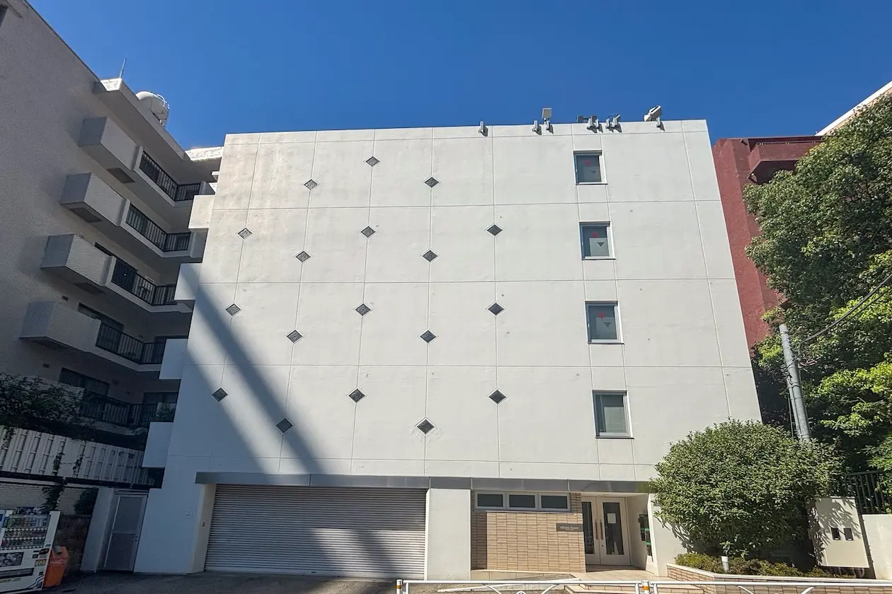 白を基調とした端正なファサードが印象的な建物。