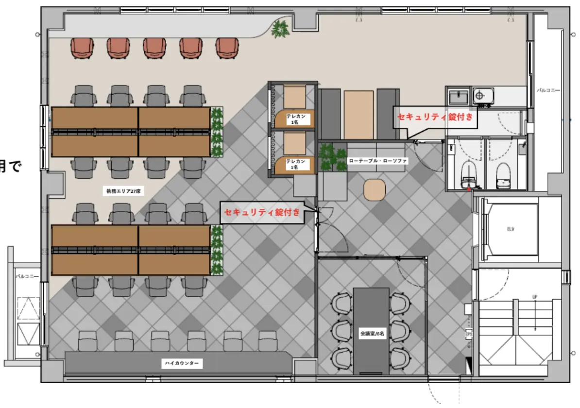 3・4階それぞれ募集中の会議室・ラウンジ付きのセットアップ空間