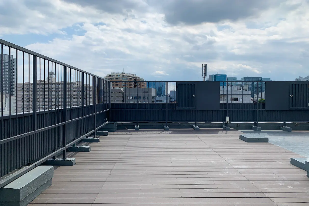屋上にはウッドデッキテラスがあり、品川エリアを一望できる眺望の良さが魅力的。
