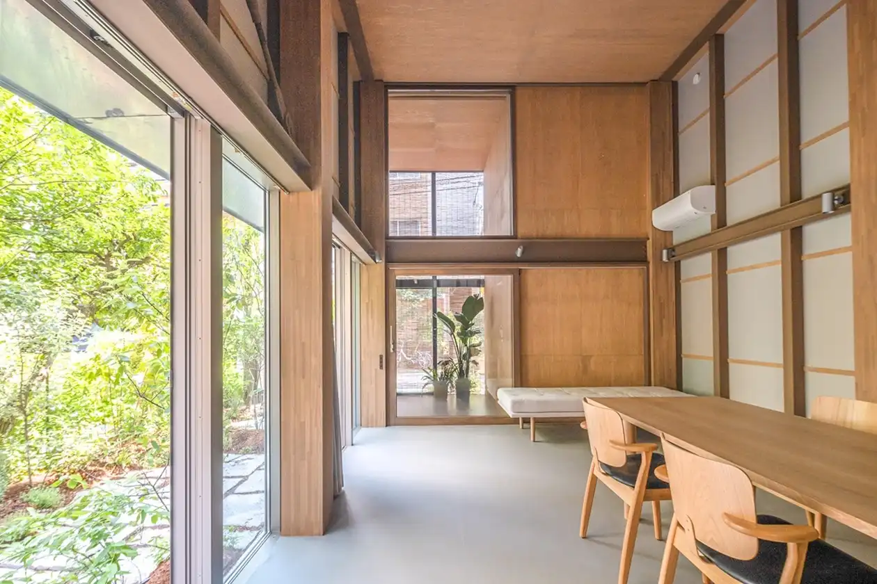 先ほどご紹介した植栽帯は、室内の横長の窓から望むことができます。