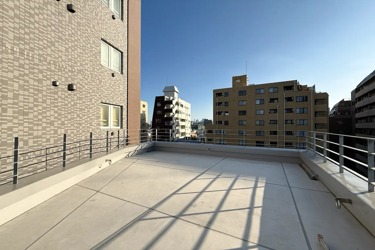 ルーフバルコニーは広々としており、周囲の景色を一望することができます。東京タワーの一部も見えるほか、サウナの設置も可能です。