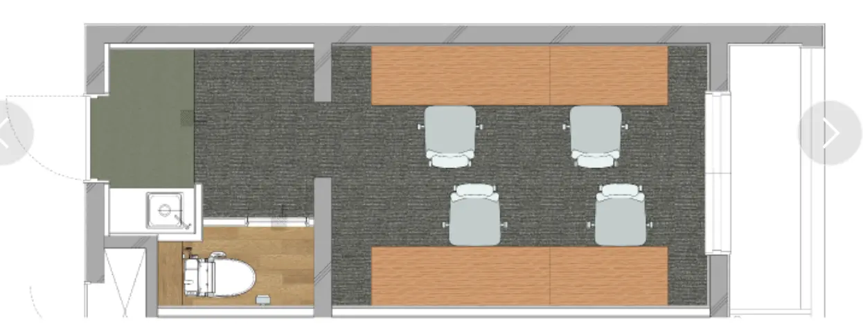 レイアウトは4つあるパターンの中からお選びいただけます。こちらはパターンD、2人での利用になります。