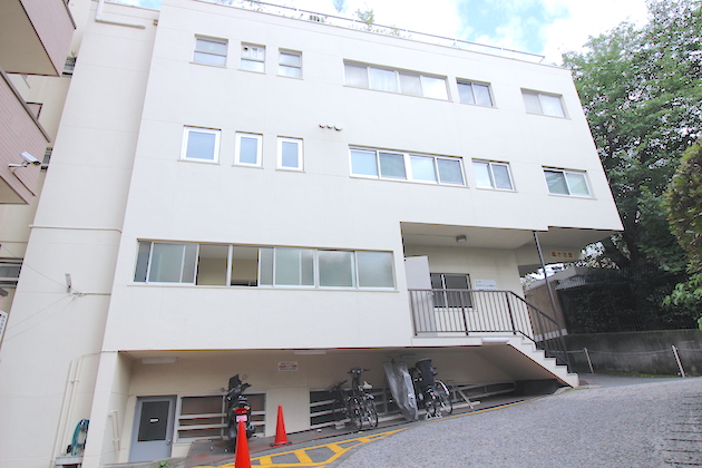 1963年施工と築年数だけで見るとヴィンテージ感があるが、管理の行き届いた白いファサード。