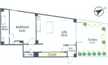 ご紹介しているのは1階のお部屋で、専用のガーデンスペースがある。