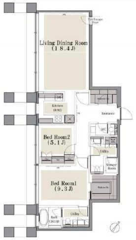 こちらは9.3帖と5.1帖の小部屋が2つ。