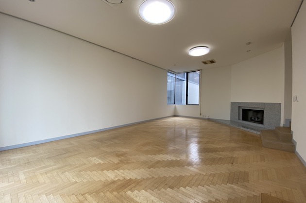 内装はヘリンボーンの床が特徴的で暖炉もあります。天井は2.9Mと開放的な空間です。