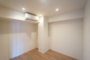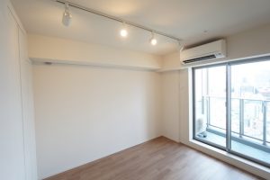 ナチュラルテイストのフローリングとライティングレールで作られたこちらの空間は、隣の5.5帖の部屋と繋げて使うことで用途の幅が広がります。