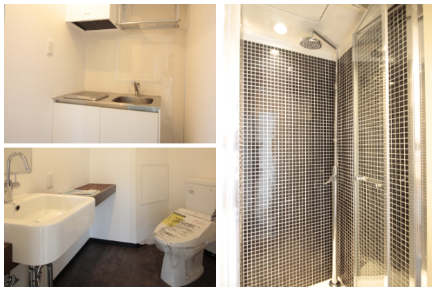 ミニキッチンは玄関すぐそばにあり、執務スペースから目に入りにくいつくりになっています。