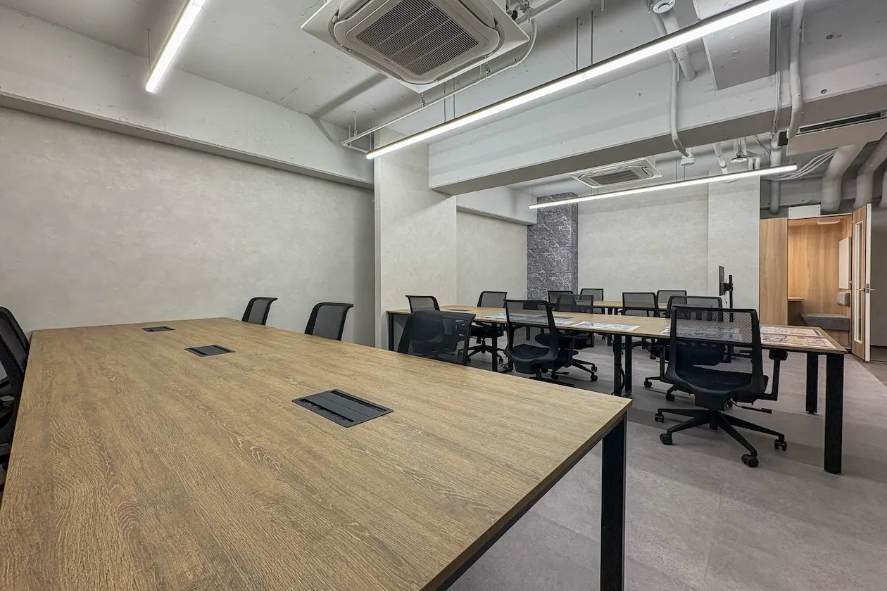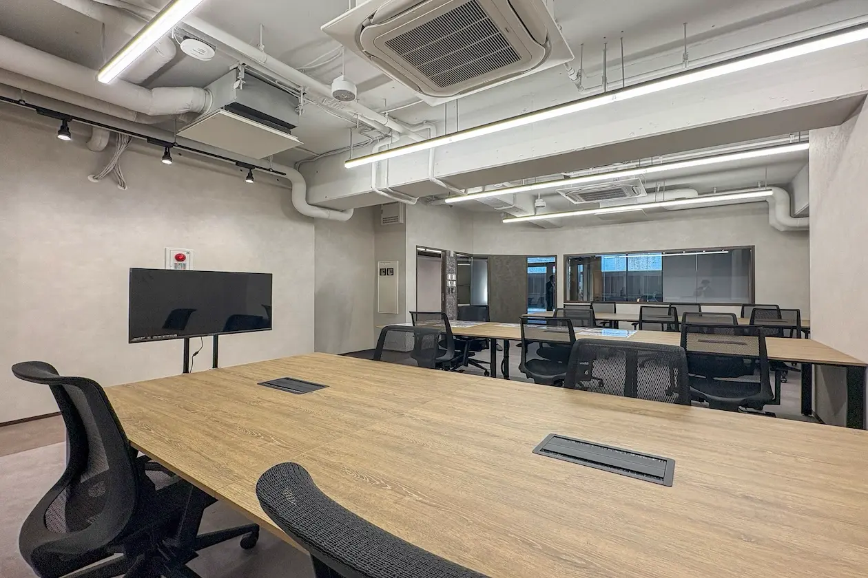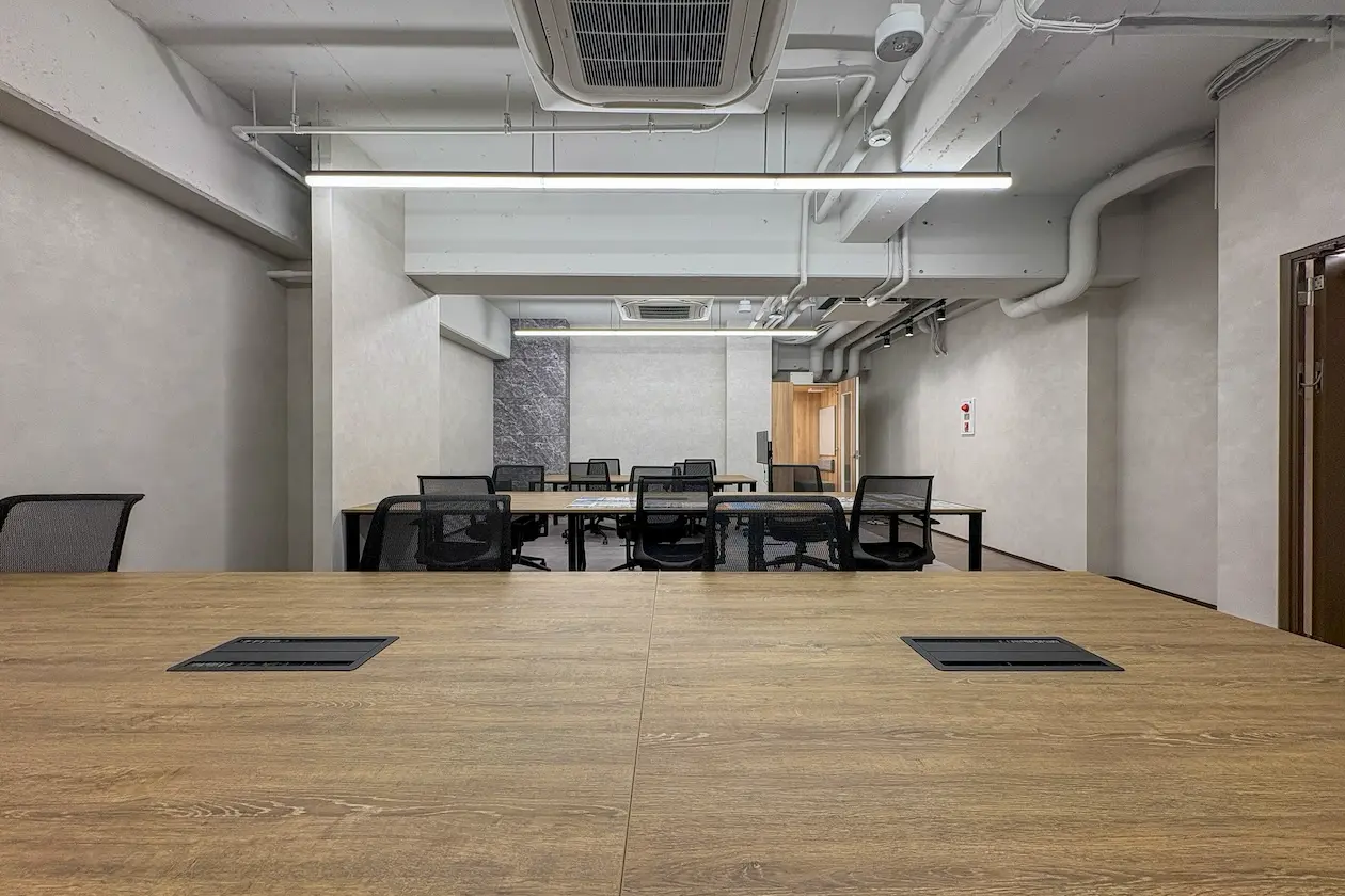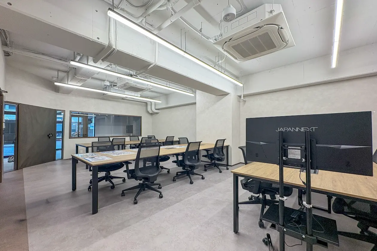 約28坪のワンフロアは、ゆとりを持ってデスクが配置されたレイアウト。現状のセットアップでは15〜25名程度の利用を想定しており、各席の間隔も確保されているため、窮屈さを感じにくい設計です。