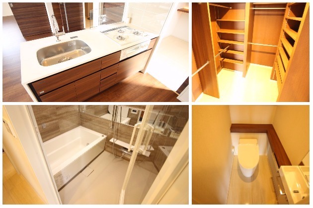 左上はキッチン、右上はウォークインクローゼット。どちらも高級感溢れる仕様です。