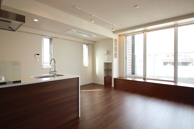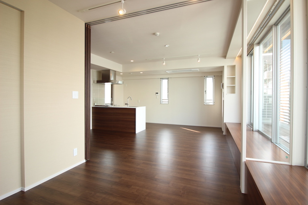 21帖越えの居室と1LDK、アイランドキッチンのように使用できるリビング。