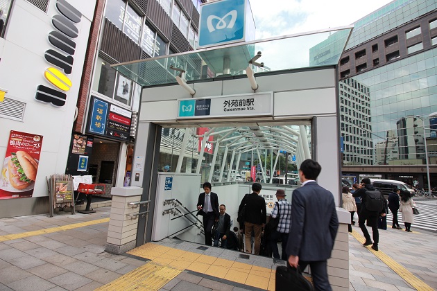 渋谷区と港区の境目に位置する外苑前。中小企業から大企業まで様々なオフィスが並び多数のビジネスパーソンが行き交います。