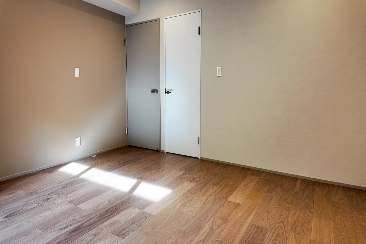 木目の美しいフローリングに、白を基調とした壁・天井が組み合わさり、やわらかく上質な印象に仕上がっています。
