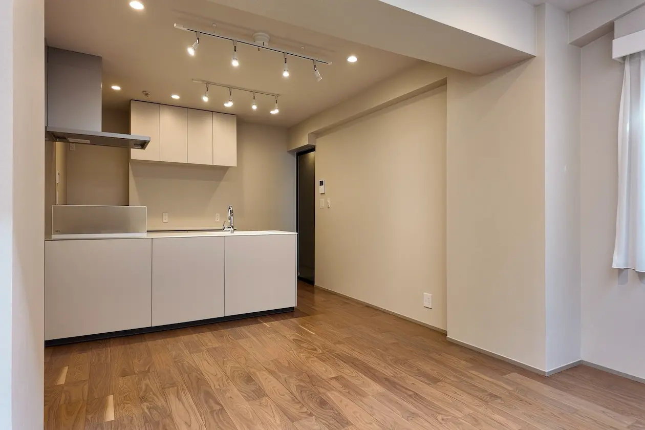 84.11㎡のゆとりある2LDKを2024年にフルリノベーション。明るいフローリングと洗練された水回り設備が整い、オフィス・SOHO利用としても快適に機能する設計です。落ち着いた環境で、質の高いワークスペースを構えたい企業様におすすめの一室です。