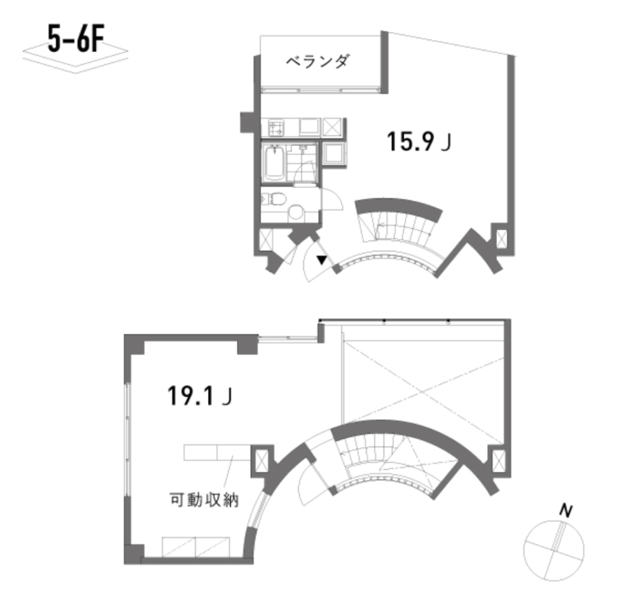 独特な螺旋階段が貫く、特徴的なデザインのメゾネットタイプ