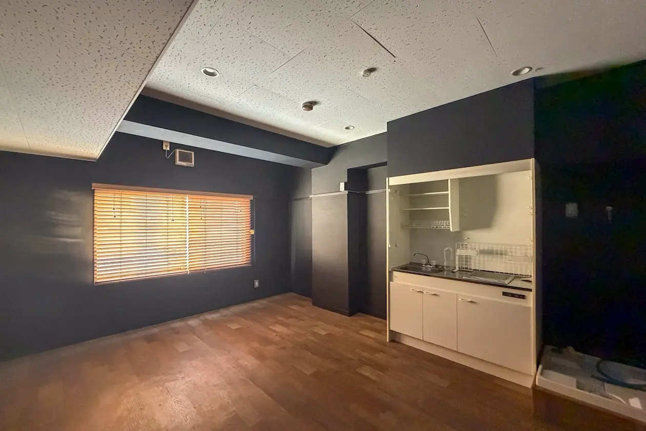 一部の区画にはミニキッチンやシャワーまで取り揃えております。まさにスタジオや稽古場としてはそのまま使用できるレベルの設備が整っている。