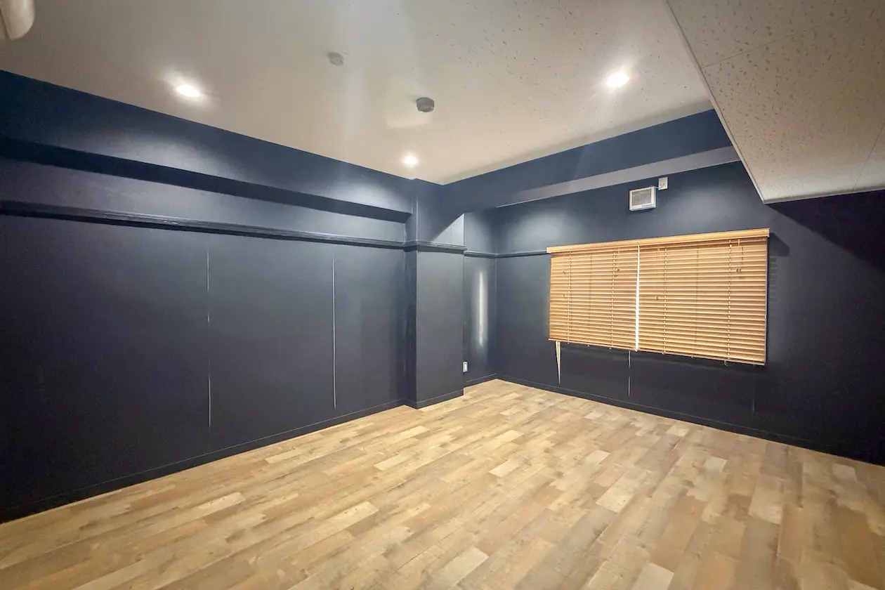 4階5階区画ブラックを基調とした落ち着きのある室内は、元々インターネット放送出演者の楽屋として作られたスペース。