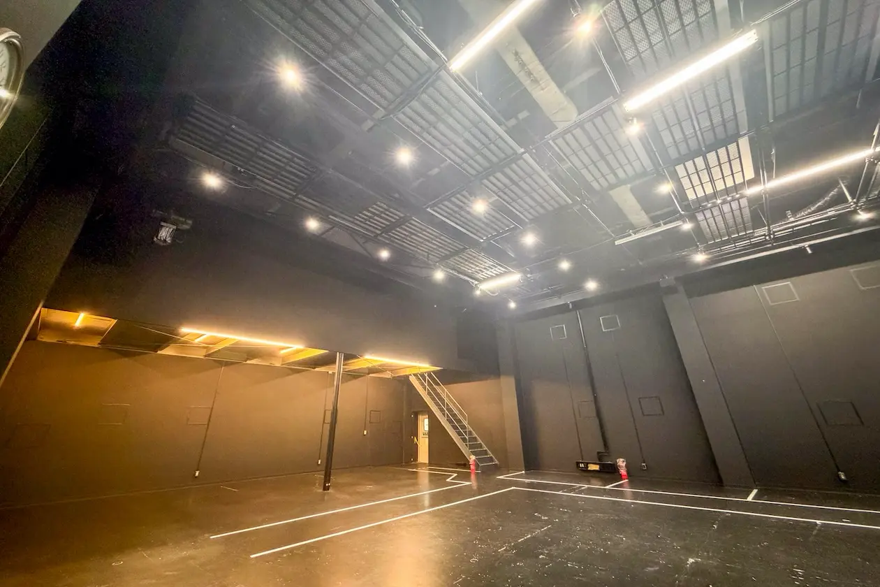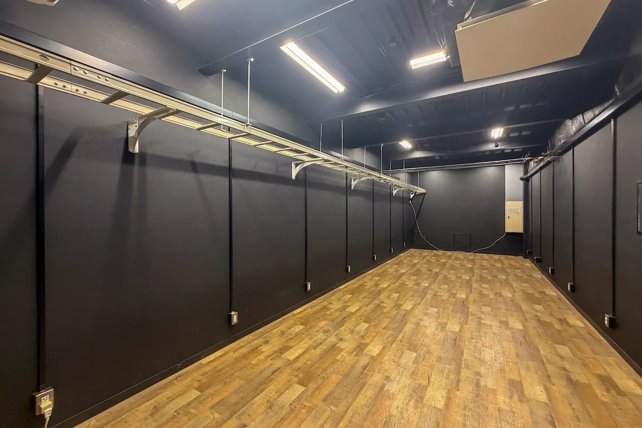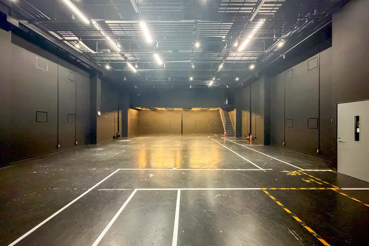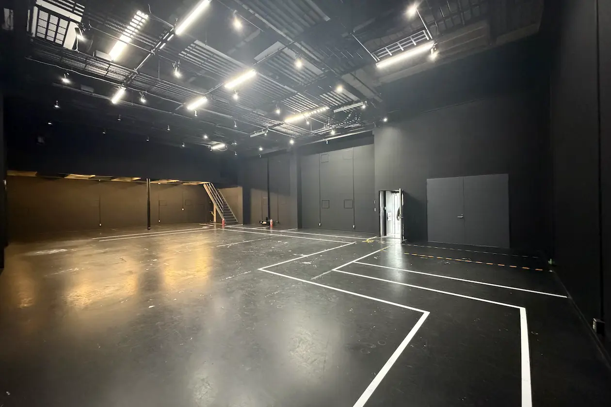 元倉庫の強みを最大限に生かし、防音壁・照明レール・広いフラット床を備えており、まさにスタジオ・稽古場・撮影セット構築などに適した空間がそのまま揃っています。