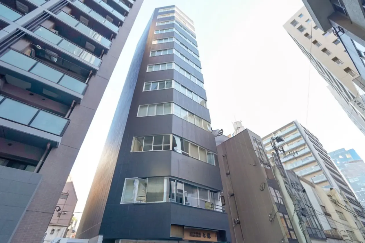 シャープで縦のラインが強調された、都心らしいスリムな外観が印象的な建物です。