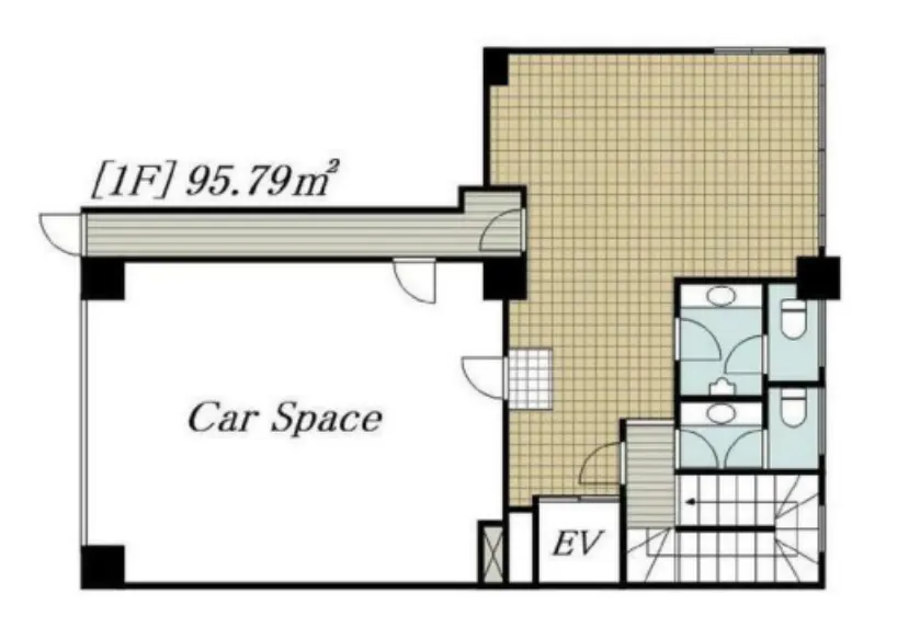 今回の区画には駐車場2台分が付帯しているため、車を使う業種や来客対応のあるオフィスにも向いたつくりです。