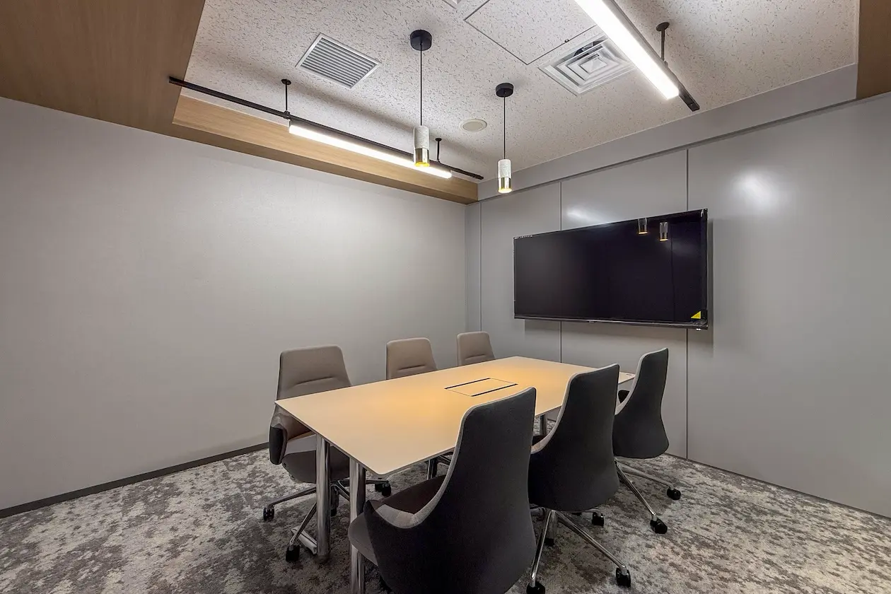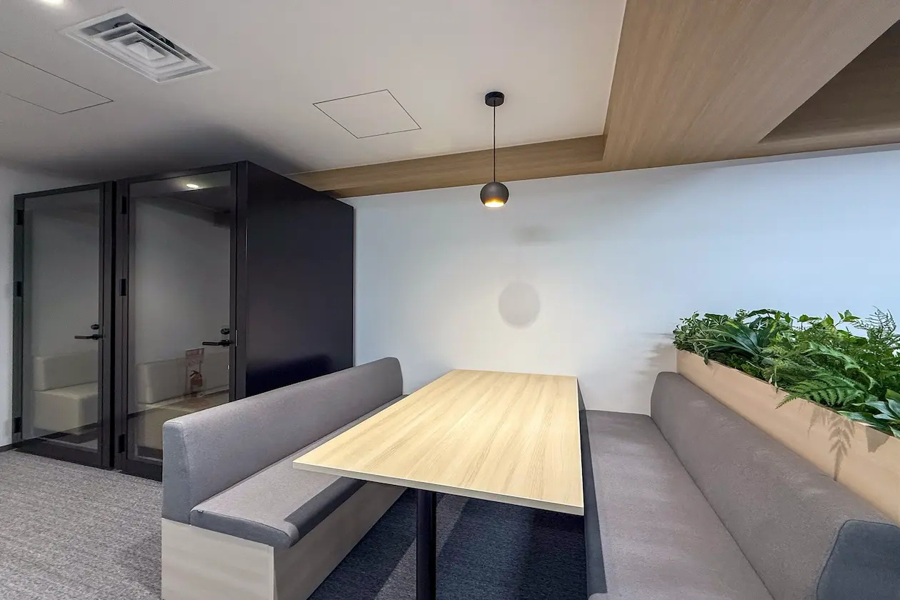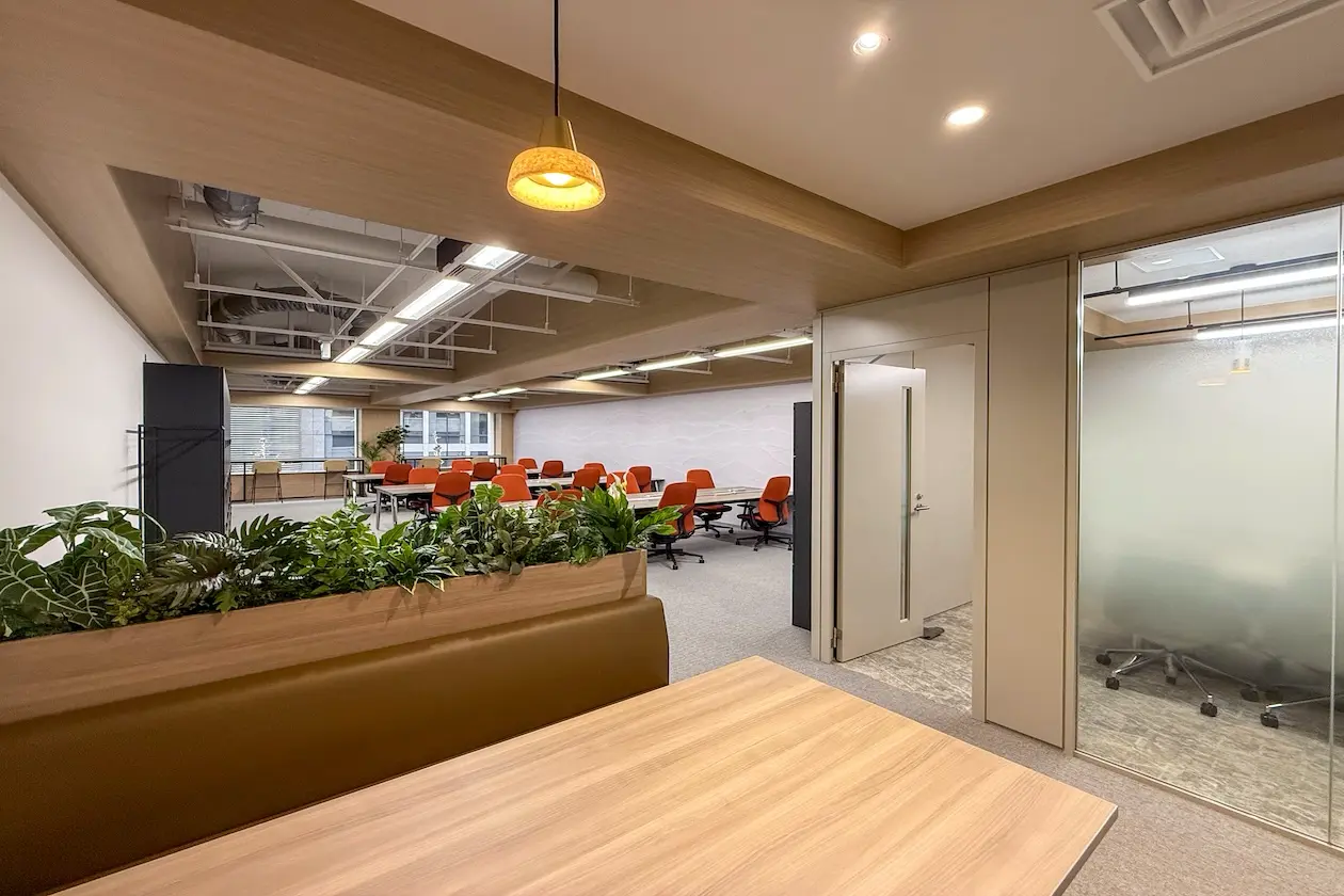 個室の会議室や打ち合わせスペースも備わっており、来客対応やオンラインミーティングにも対応可能。
