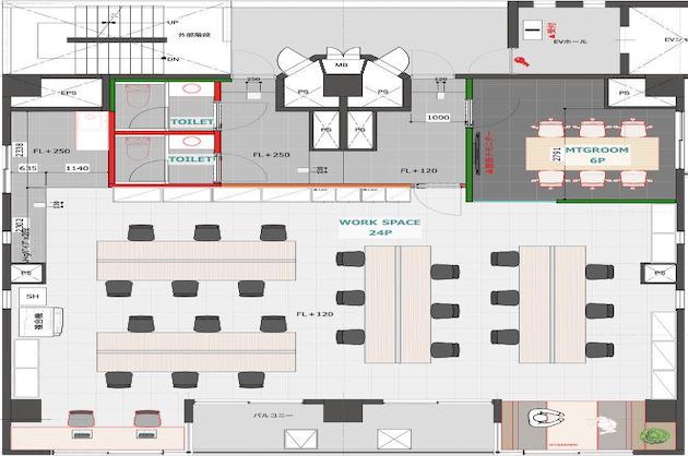 JRの駅近、住居区画をオフィス仕様にコンバージョン