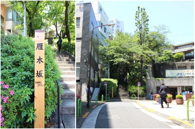 大通りを1本裏に入り、緑が茂る「雁木坂」という敷石の階段を上ると、本物件が見えてきます。
