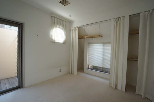 リビングと繋がっているバルコニーは広め、戸建て物件なのである程度自由に利用できる。