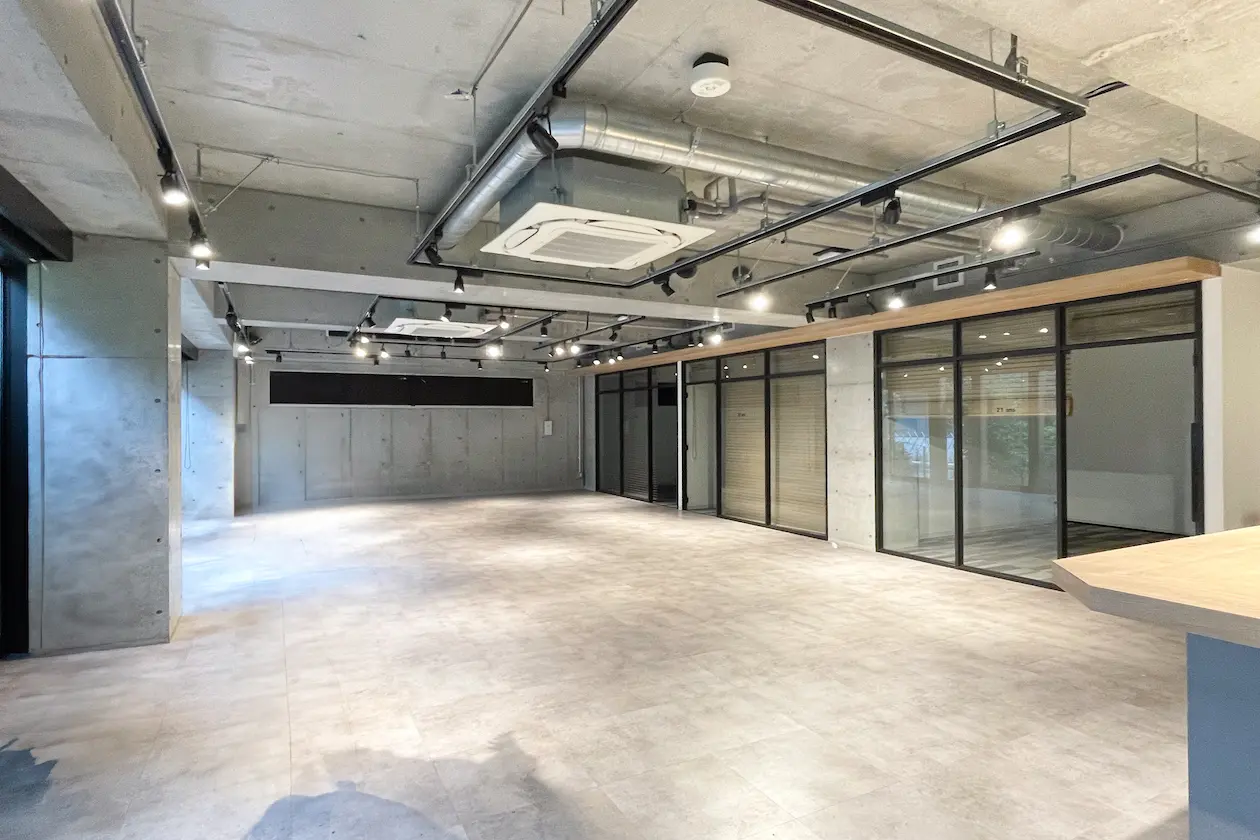 内装は使いやすく整えられたオフィス仕様となりますが、スケルトン渡しもご相談可能ですので1階のようにスケルトン天井を楽しんだりお好みの空間に作り変えていただくことも可能です。