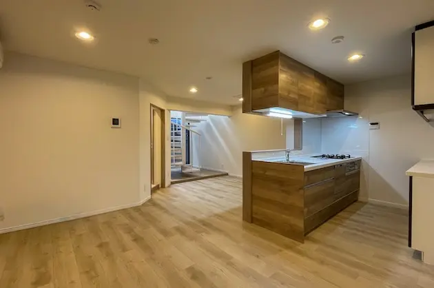 木目調のフローリングと白を基調とした内装が、空間全体にやわらかな明るさをもたらしています。