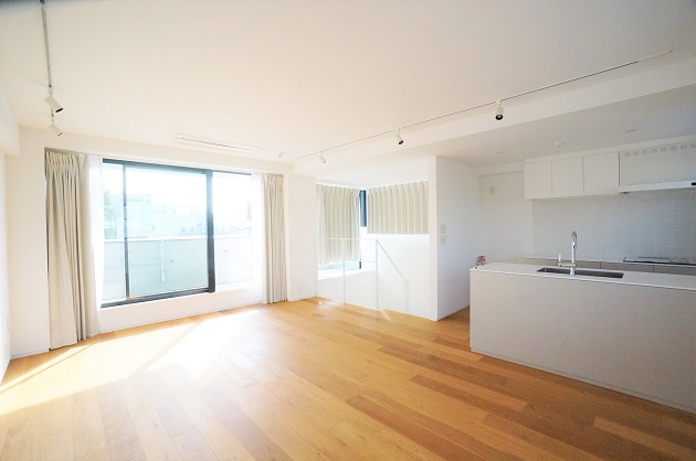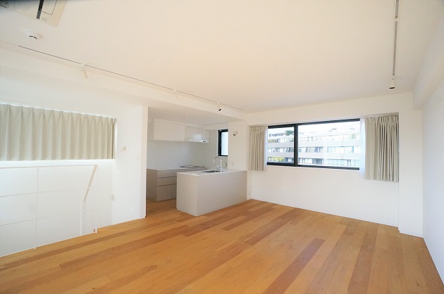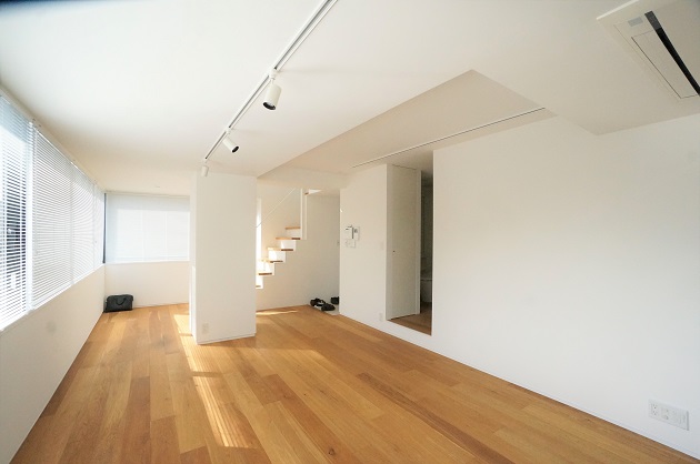 床材の木目が美しい、爽やかなメゾネットSOHOのご紹介です。