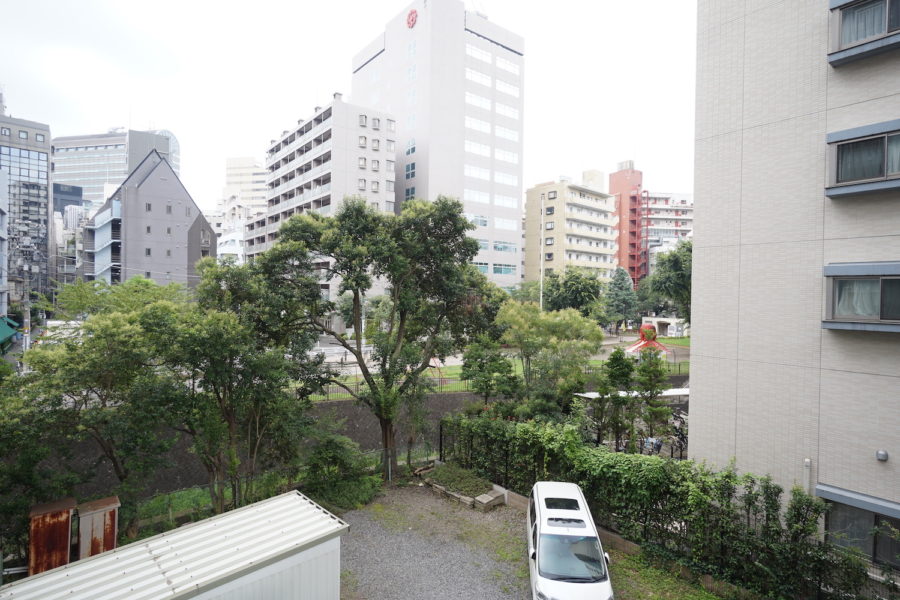 渋谷川と公園向きの部屋なので、眺望には抜け感がある。