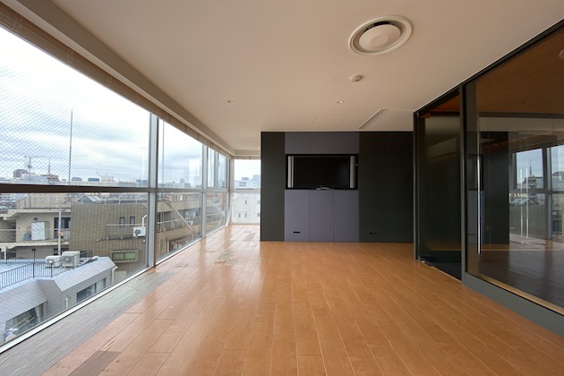 明るいフローリングと大きいガラスが広がり、採光豊かな空間です。
