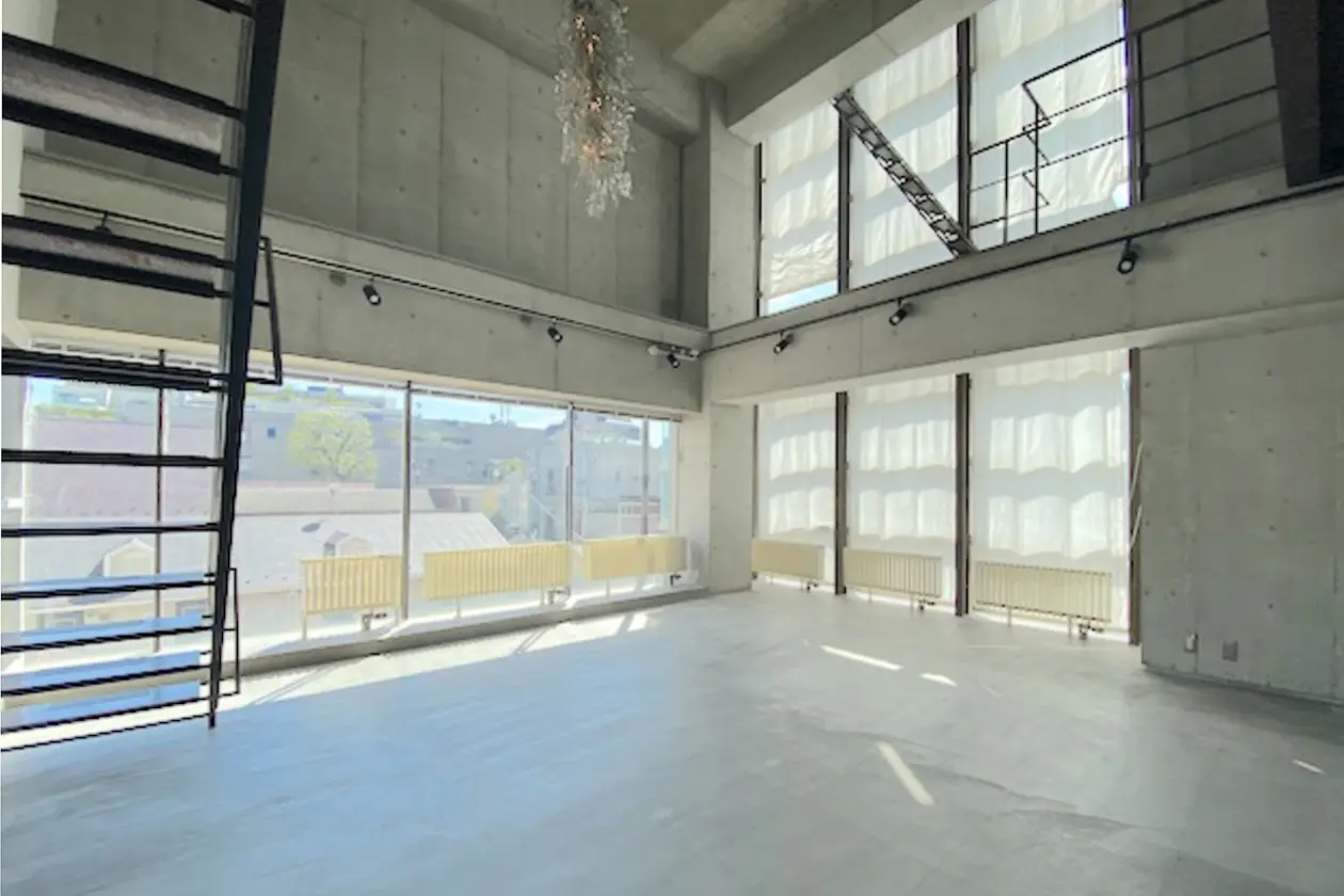 恵比寿駅から徒歩3分ほど。好立地に天井高5.6mの空間を有する大型デザイナーズオフィスが募集中です。