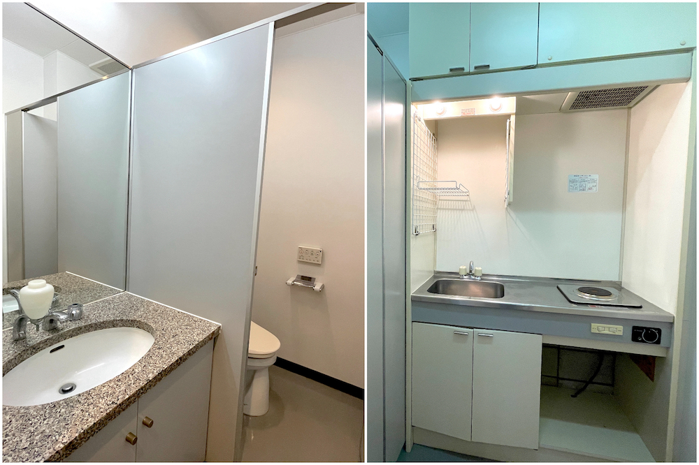同フロアのトイレは男女別。クラシカルな水回りです。