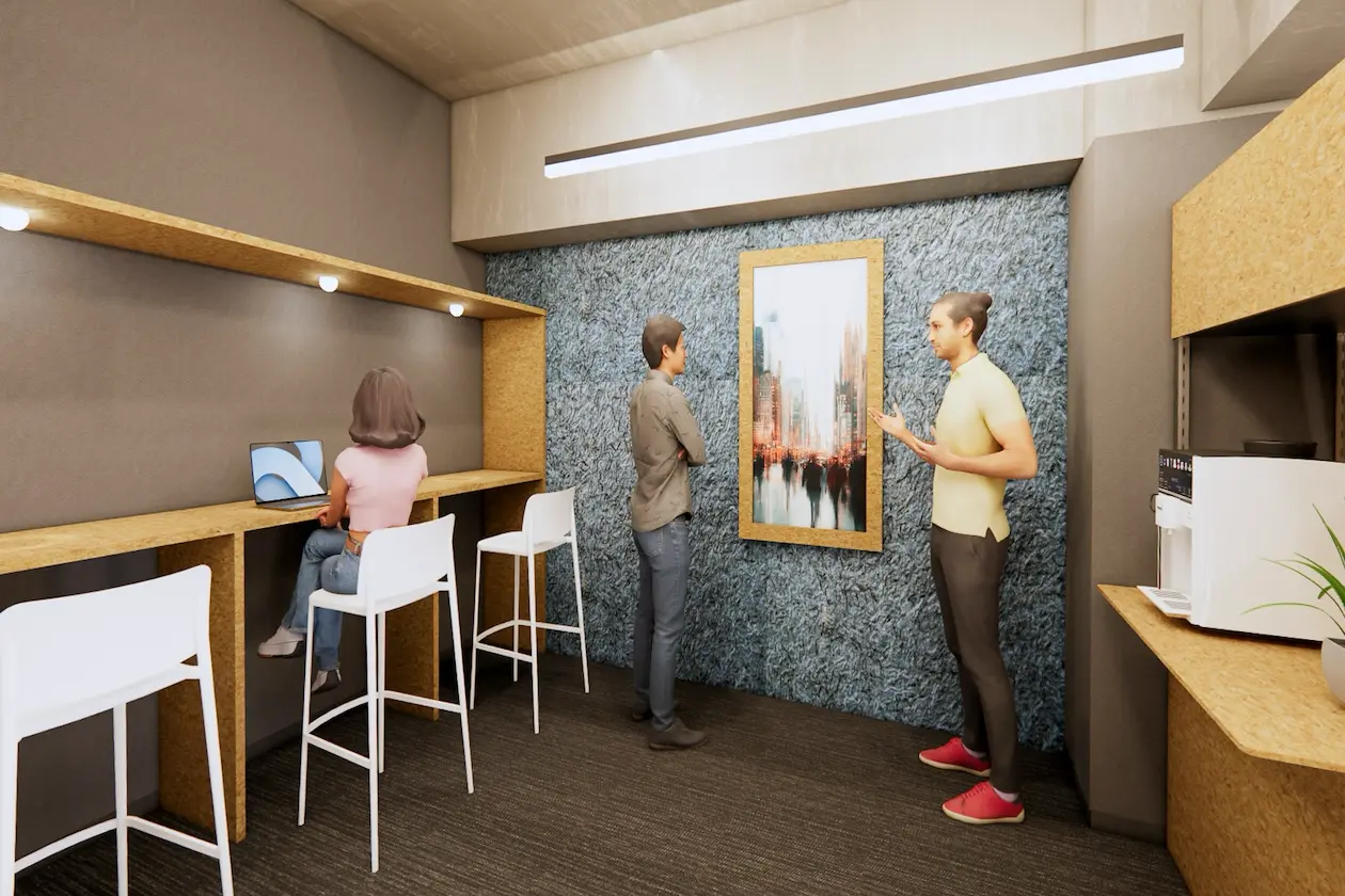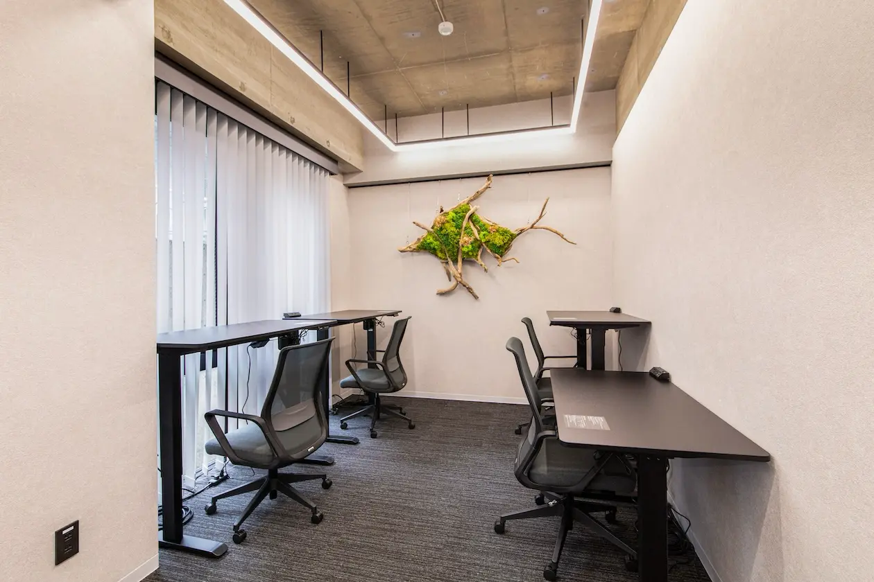 壁面にはグリーンアートをあしらい、長時間の作業中でも視界にリズムが生まれるデザインです。