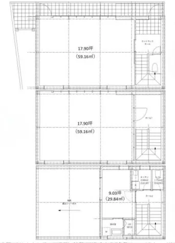 3階は住居仕様の区画のため有効面積はコンパクトですが、バックオフィスやストレージスペースとしての活用に適しています。