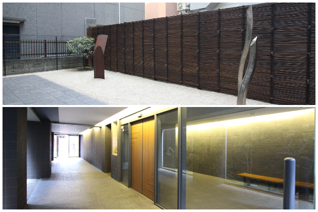 上の写真はエントランス横のオープンスペース。オープンスペース、エントランス共に和モダンテイストのゆったりとした落ち着いた印象。都心部にありながらリラックスできるちょっとした癒しの場になるのではないでしょうか。