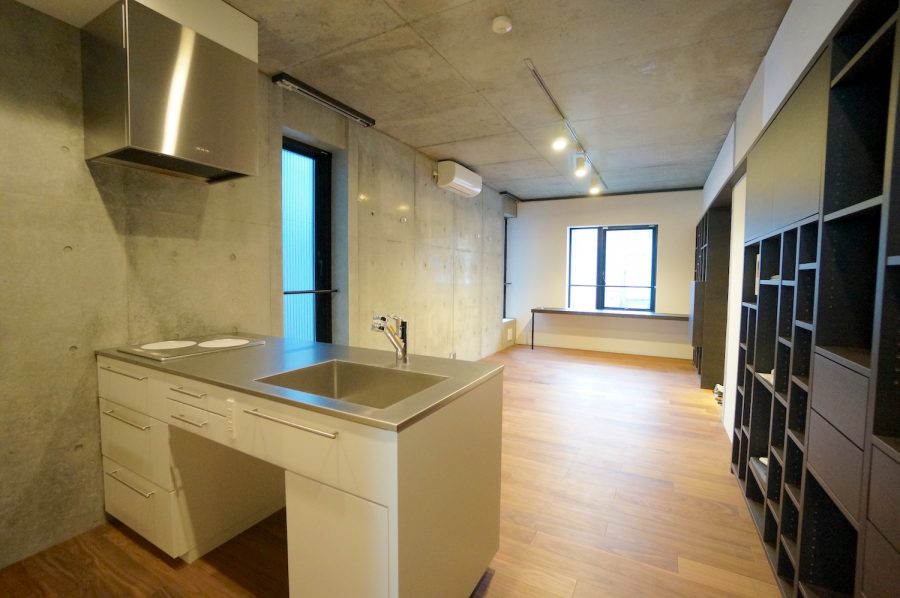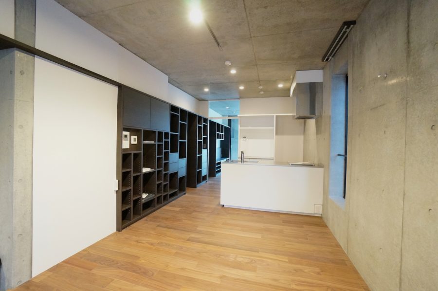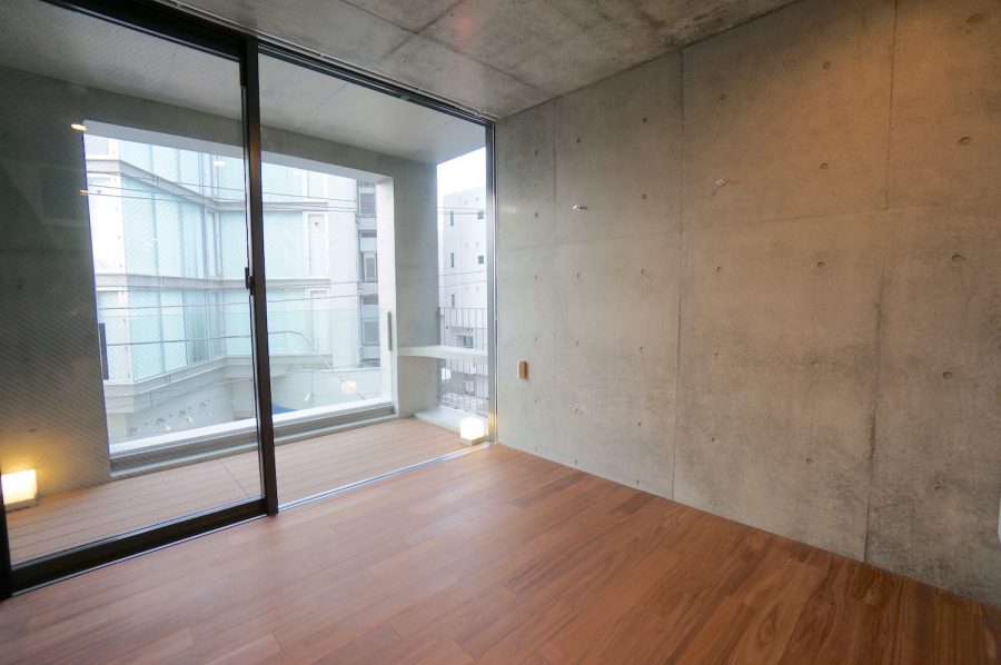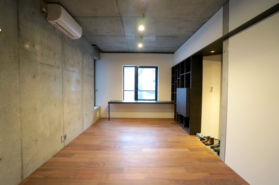 1LDKタイプの室内はコンクリート打ちっ放しにフローリングという王道的なデザイン。