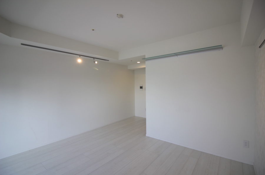 廊下を抜けると、白を基調としたワンルームタイプのSOHO空間。