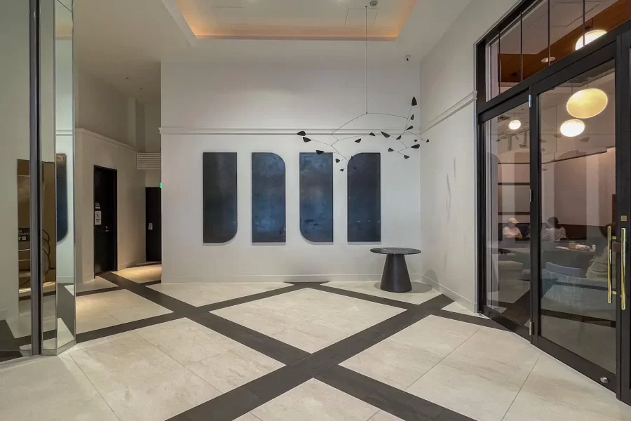 こちらは高級感漂うエントランスホール、モノトーンで洗練されたインテリアが出迎えてくれます。