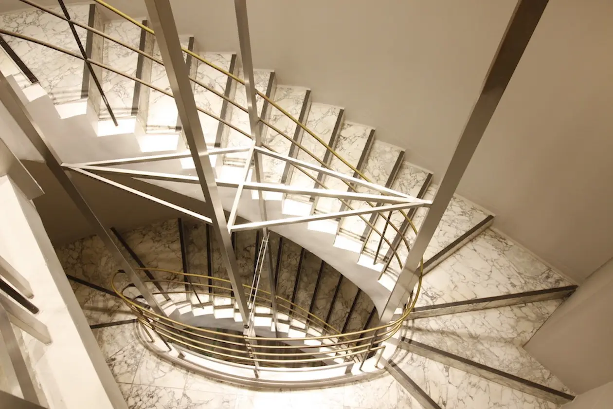 大理石の螺旋階段が地下1階から2階までを繋いでいます。