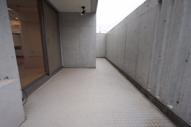 下層階から出ることができる打ちっぱなしコンクリートに囲まれたテラスです。